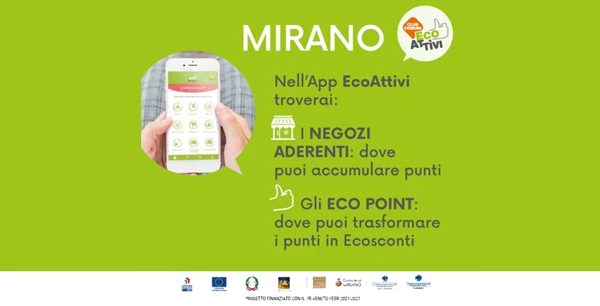 Il progetto ECOATTIVI nasce con l’obiettivo di premiare i cittadini per i loro comportamenti sostenibili e, al contempo, sostenere il commercio di prossimità. Attraverso l’App gratuita ECOATTIVI, i residenti di Mirano, possono accumulare punti compiendo azioni quotidiane che riducono l’impatto ambientale e contribuiscono al benessere della comunità. Tra le principali attività premiate troviamo gli spostamenti a piedi o in bicicletta, che consentono di accumulare 20 punti per chilometro; l’utilizzo della biblioteca comunale, con 100 punti per ogni prestito e la partecipazione a eventi locali...