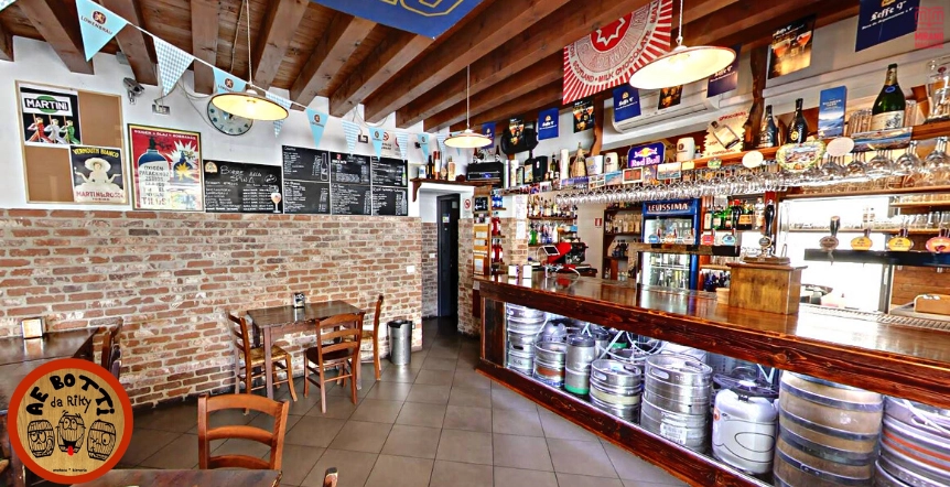 Appena arrivi ti ritrovi immerso nel legno. Botti e tavoli ti aspettano all’esterno e sotto la tettoia di quello che una volta era un fruttivendolo affacciato al capolinea degli autobus, poi parcheggio, ed ora diventata una piazza con una splendida fontana e un leone in pietra rossa di Chiampo a far da padrone.