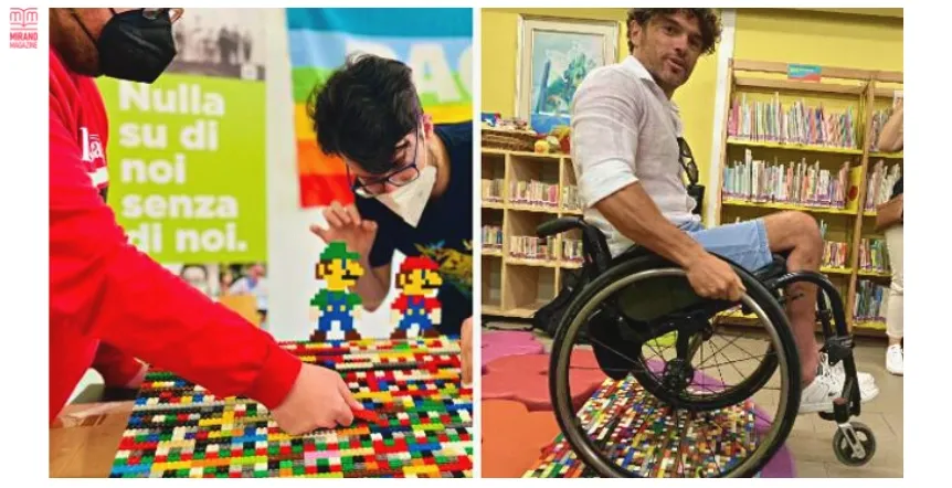 Coloratissime rampe di mattoncini Lego accolgono le persone con disabilità motoria alle entrate e all’interno di negozi e strutture pubbliche. Un lavoro artigianale realizzato con grande passione da Enrico Balestra assieme ai giovani Nicola Barzon, Ludovico Lancia, Enrico Ortile e Alessandro Padrin. I cinque si sono conosciuti nell’ambito dei progetti sperimentali di inserimento lavorativo di persone con disabilità promossi dal servizio di integrazione lavorativa dell’Usl 6 Euganea. Il progetto iniziale, chiamato «Talents», è nato due anni fa con la rete di cooperative Habile e consisteva nella realizzazione di un laboratorio di comunicazione per giovani con disturbo dello spettro autistico come loro, gestito da Sebastiano Rizzardi. «Un giorno Enrico Balestra ha portato nel nostro laboratorio una riproduzione di Super Mario (eroe dei videogiochi Nintendo, ndr) fatto con i Lego, ho capito che mi stava comunicando che le costruzioni con i mattoncini colorati erano la sua passione – spiega Rizzardi -. Abbiamo allora cercato di vedere cosa potevamo fare con i Lego e abbiamo trovato la storia di Rita Eben, una nonna tedesca che costruiva con i Lego le rampe che consentono alle persone con disabilità motoria di accedere con più facilità agli edifici. L’abbiamo allora contattata e ci ha spiegato come realizzarle».